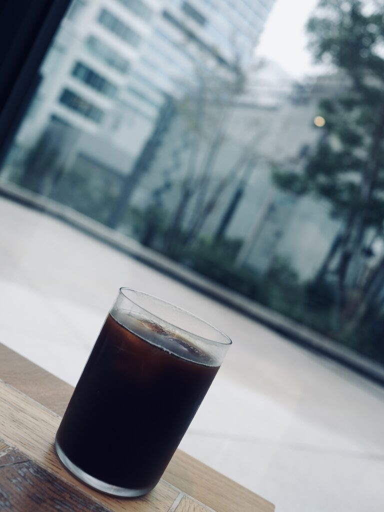 お写真は都会のオアシスで飲むアイスコーヒーです。