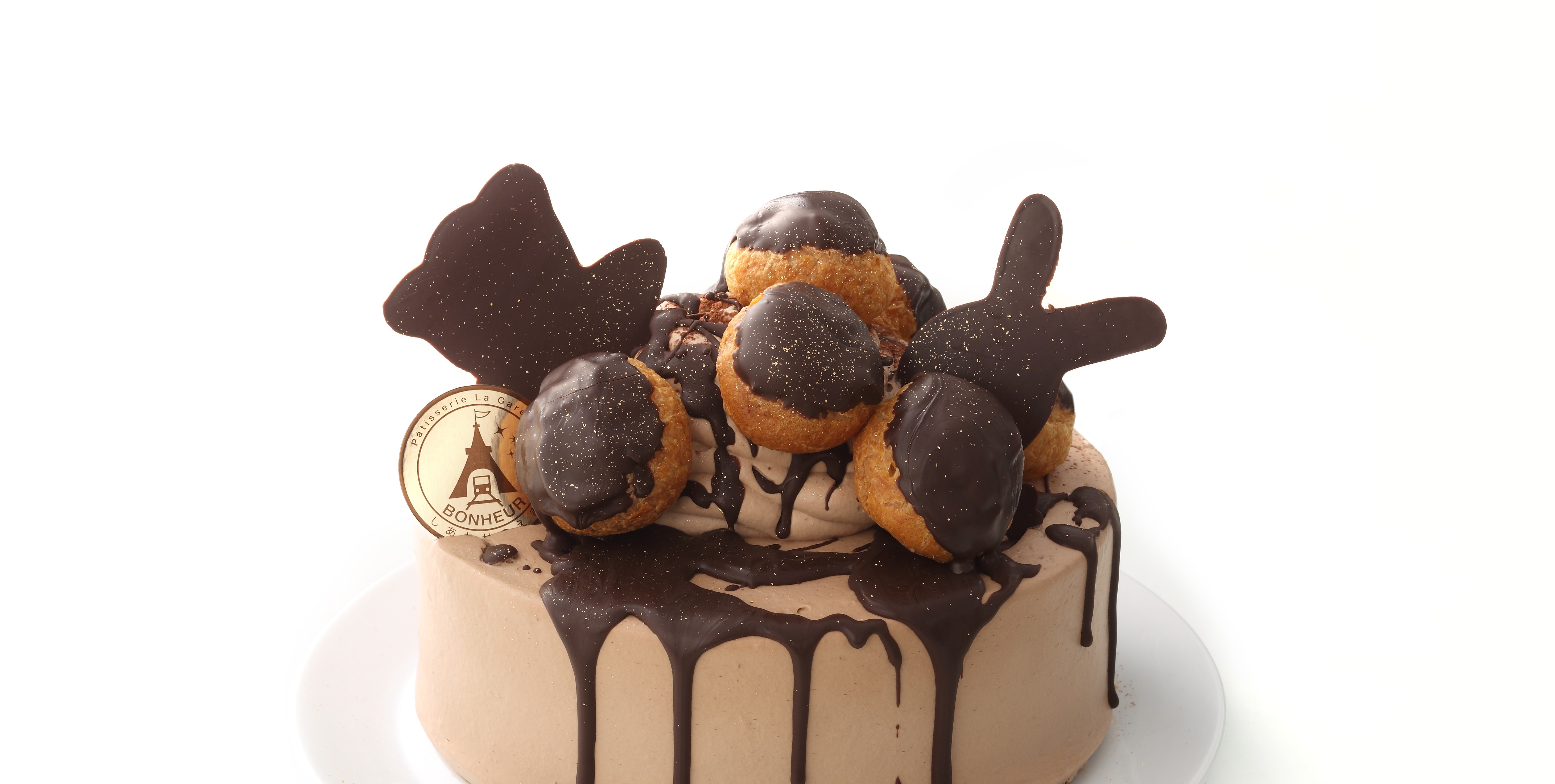 チョコレートのシュークリームを載せて、