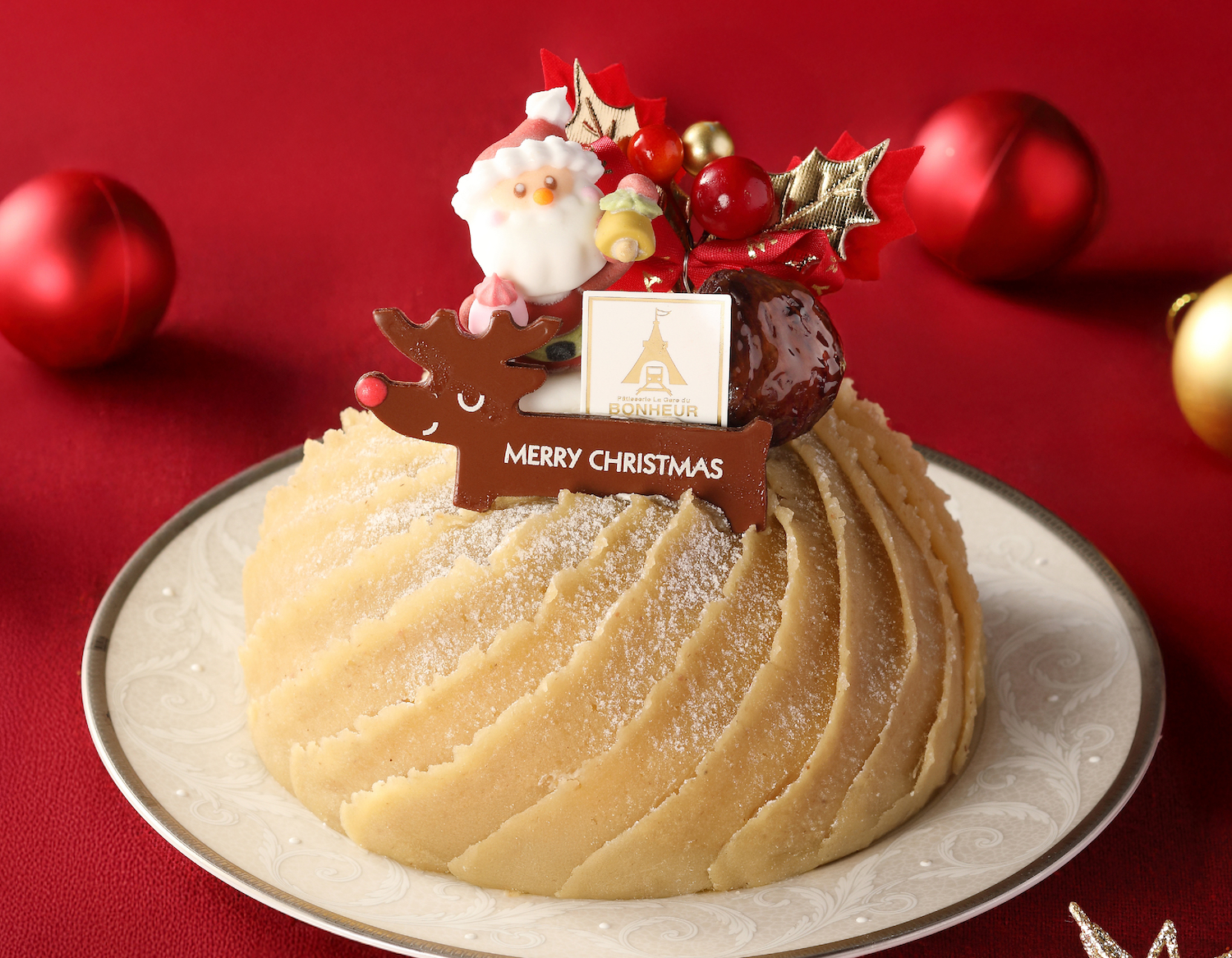 ショコラとアーモンドが織りなす奥深い味わい。 濃厚なショコラノワールのクリームに、しっとりビスキュイショコラ、 なめらかなシャンティショコラを重ねた、 贅沢なショコラクリスマスケーキです。