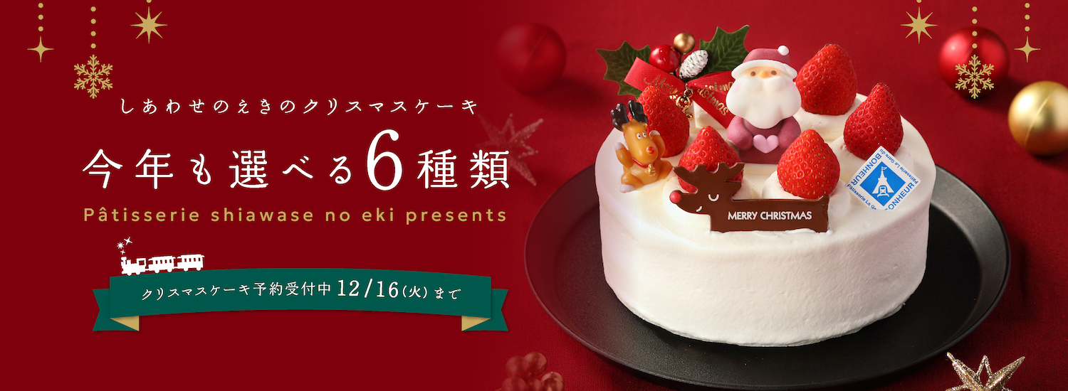 しあわせのえきの2025年のクリスマスケーキ予約開始しました!予約は、12/16(火)までですのでお早めに店頭にてご予約ください。