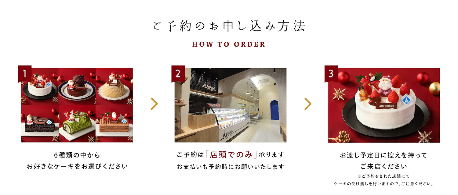 ご予約をされた店舗にてケーキの受け渡しを行いますので、ご注意ください。